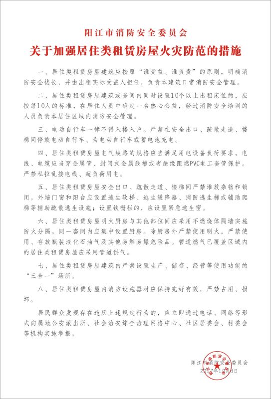 關(guān)于加強(qiáng)居住類租賃房屋火災(zāi)防范的措施
