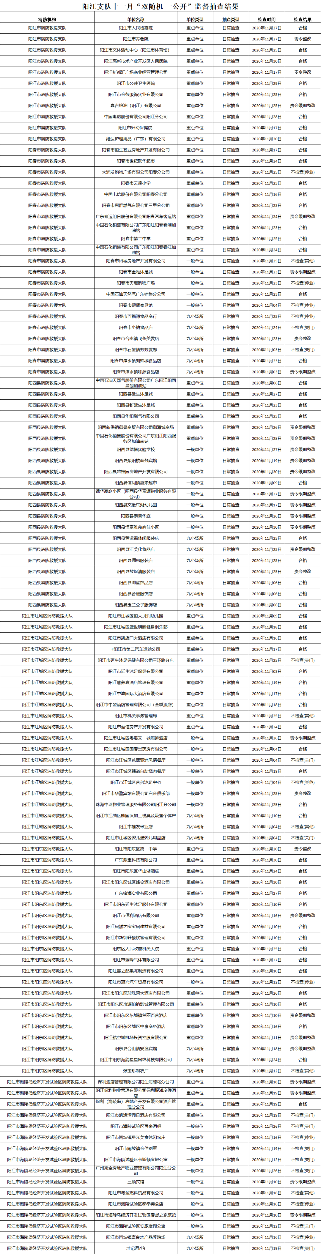 陽江消防“雙隨機、一公開”11月份檢查結果公布