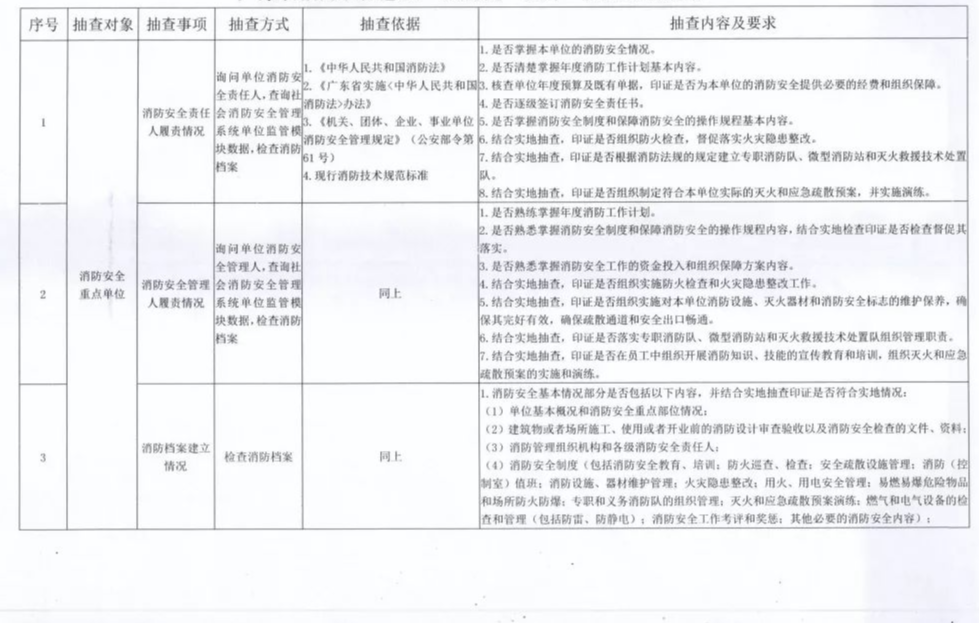 廣東省消防救援總隊“雙隨機、一公開”抽查事項清單公告