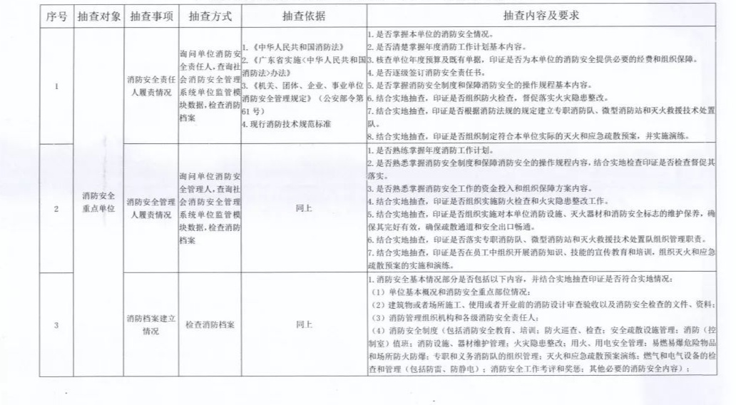 廣東省消防救援總隊“雙隨機、一公開”抽查事項清單公告