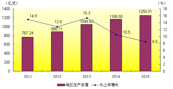 圖1 :2011-2015年地區生產總值(年均增長12.4%)