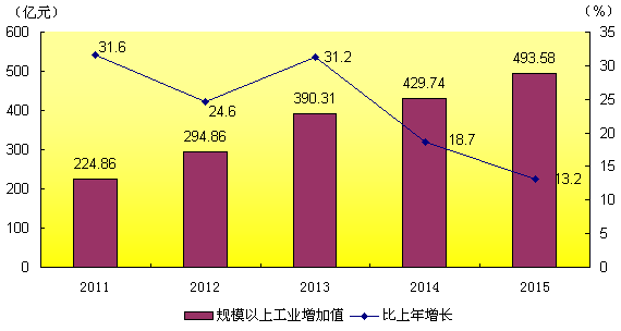 圖4:2011-2015年規模以上工業增加值(年均增長23.7%)