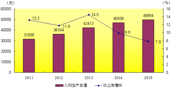 圖3:2011-2015年人均地區生產總值(年均增長11.4%)