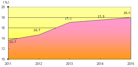 圖8:2011-2015年地方一般公共預算收入(年均增長21.4%)