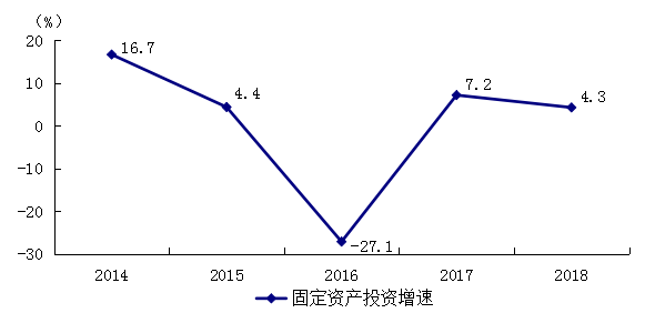 圖5:2014-2018年固定資產投資增速(年均下降0.1%)