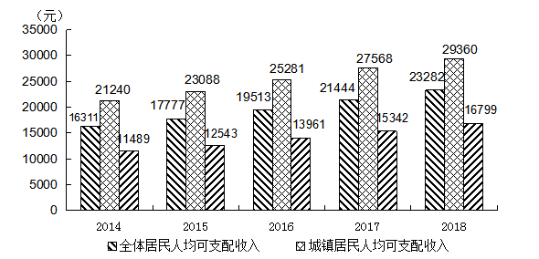 全年全體居民人均可支配收入23282元,同比增長8.6%。其中,城鎮常住居民人均可支配收入29360元,增長6.5%;農村常住居民人均可支配收入16799元,增長9.5%。