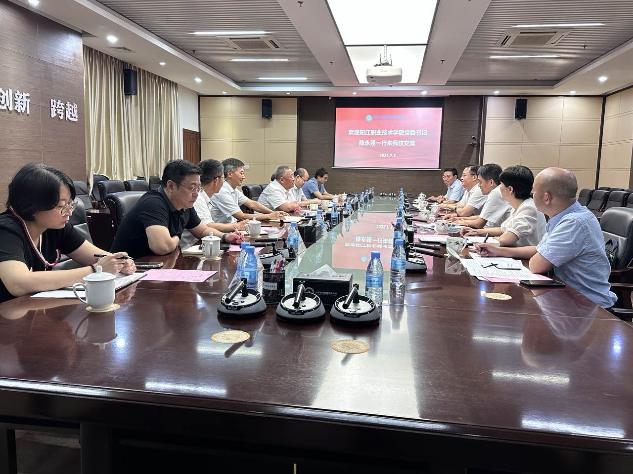 7月3日,陽江職院黨委書記陳永強率隊前往珠海城市職業技術學院開展交流學習,雙方圍繞職業教育領域深度合作與幫扶事宜展開座談,學校黨委委員、副院長劉和平及相關部門負責人隨行。