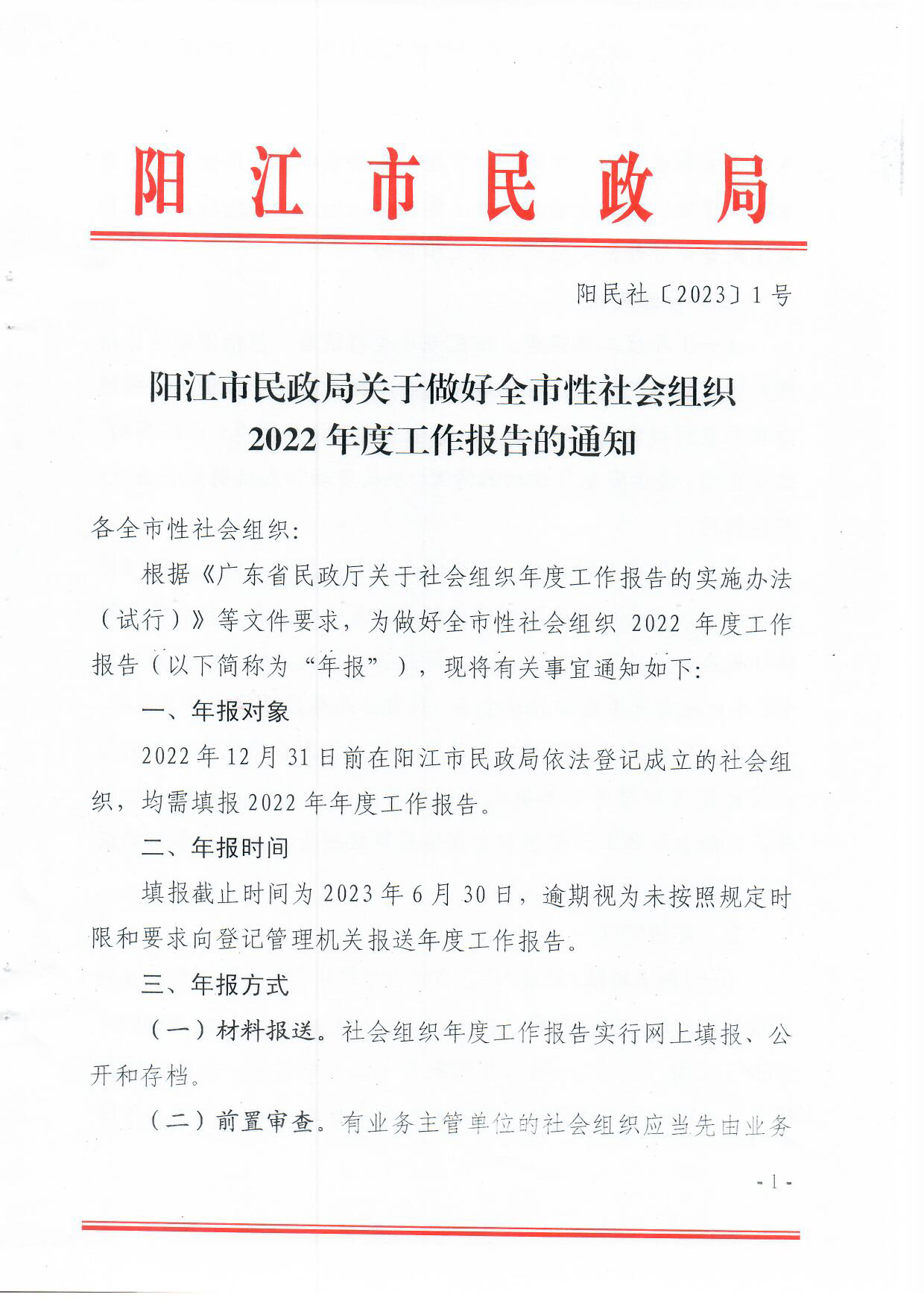 陽江市民政局關于做好全市性社會組織2022年度工作報告的通知
