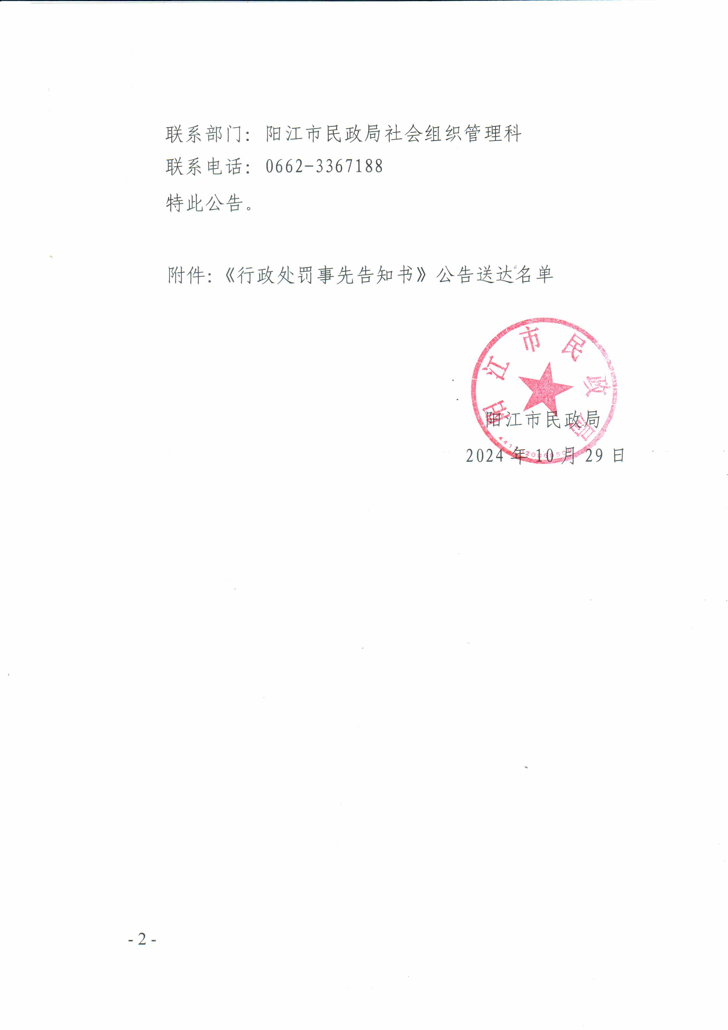 陽江市民政局《行政處罰事先告知書》送達公告.pdf