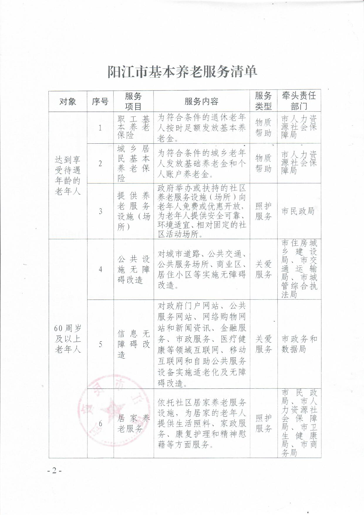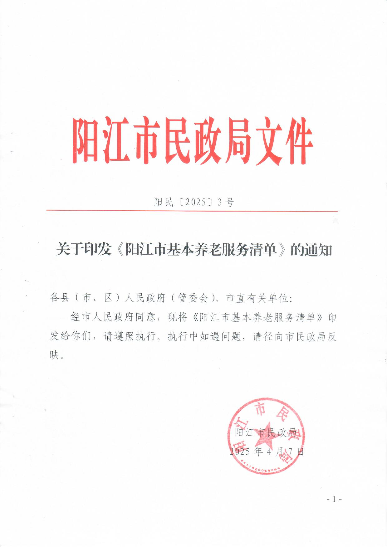 關于印發《陽江市基本養老服務清單》的通知