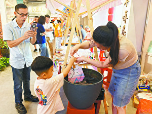 小朋友親自體驗(yàn)漂漆扇子的制作過程。李柳枝攝