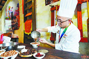 “我并非專業(yè)的廚師,而制作‘豆米泳’花生的工序又繁多且講究。”黃業(yè)曉說,首先需選取香味濃的本地花生,清洗后用八角、大茴、小茴、桂皮、香葉、南乳、大蒜等香料慢熬3小時而成的鹵水浸泡整夜,再經數日晾曬徹底脫水,炒制時的鹽溫、火候、翻炒頻率等更是關鍵。在市人社局粵菜大師工作室和陽江多個餐飲企業(yè)廚師團隊的幫助下,黃業(yè)曉逐漸掌握了“豆米泳”花生的制作精髓,還創(chuàng)新研發(fā)了花生糖、花生酥、花生糕、花生月餅、花生蛋卷等深加工食品。