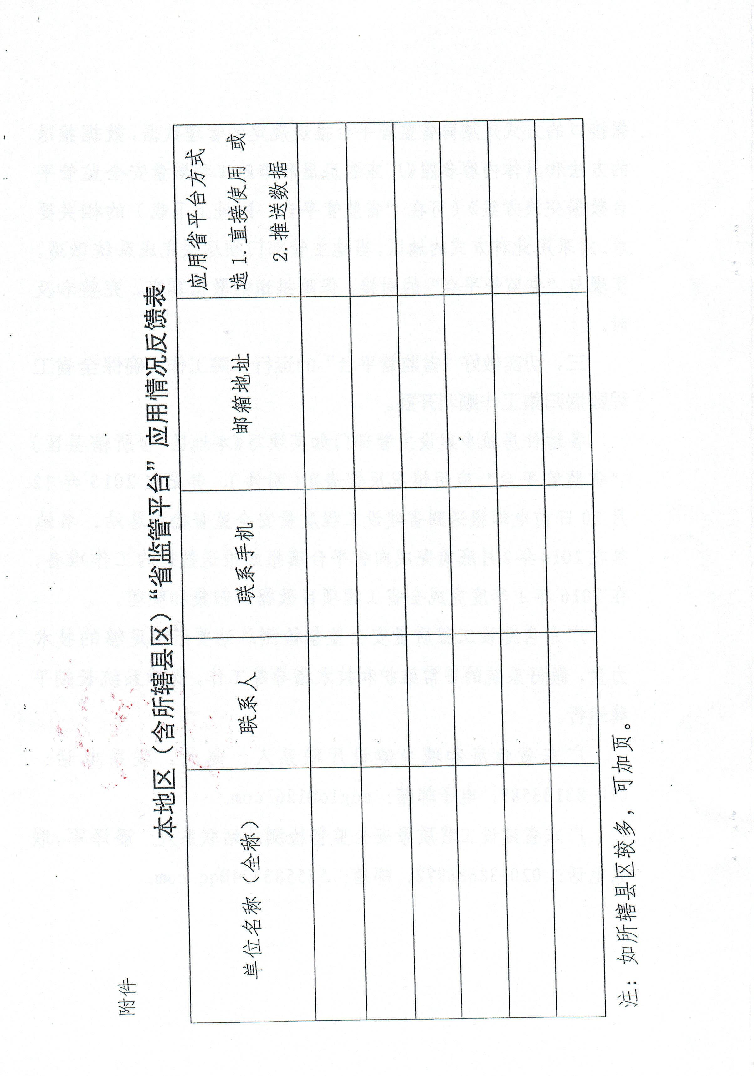 號)轉發給你們,請認真貫徹執行。并填寫《本地區“省監管平臺”應用情況反饋表》,于