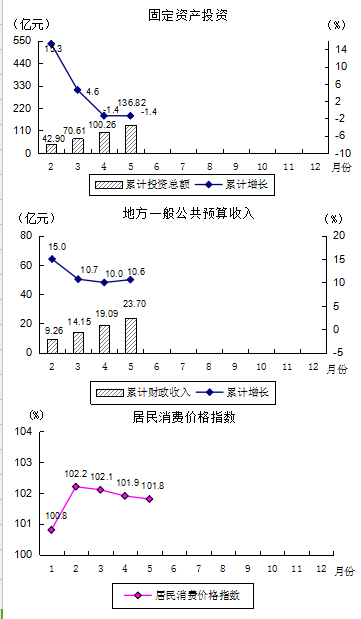 1-5月,全市經(jīng)濟(jì)運(yùn)行總體平穩(wěn)。主要經(jīng)濟(jì)指標(biāo)情況如下:
